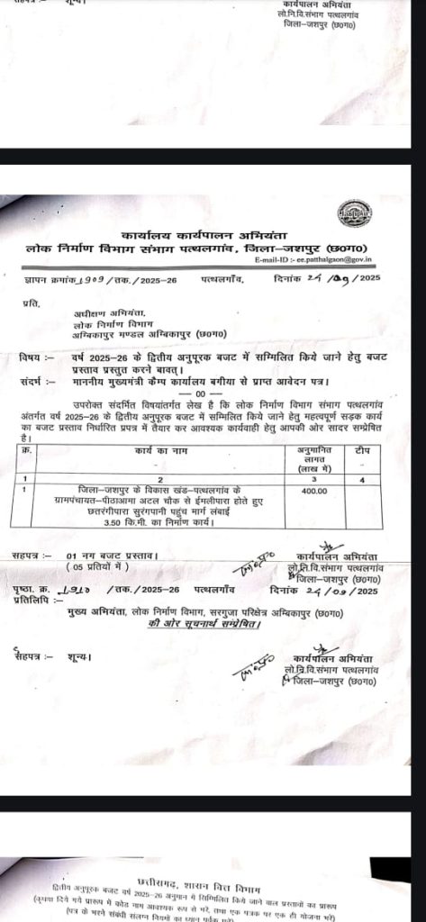 जशपुर। ग्राम पंचायत पीठाआमा क्षेत्र के लोगों के लिए एक बड़ी खुशखबरी सामने आई है। लंबे समय से आवागमन की समस्या से जूझ रहे क्षेत्रवासियों की बहुप्रतीक्षित मांग अब पूरी हो गई है। भारतीय जनता पार्टी की साय सरकार ने ग्रामीणों की सुविधा को ध्यान में रखते हुए इमलीपारा से छतरंगीपारा तक 3.5 किलोमीटर लंबी सड़क निर्माण कार्य को स्वीकृति प्रदान की है। इस सड़क निर्माण के लिए करीब 4 करोड़ रुपये की राशि स्वीकृत की गई है।