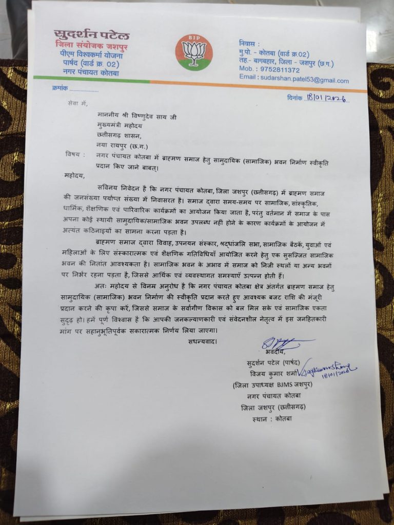 प्रस्तावित विकास कार्यों में ब्राह्मण समाज के लिए सामुदायिक भवन निर्माण की स्वीकृति को भी विभाग ने प्राथमिकता दी है, जिसे लेकर क्षेत्र में चर्चा का विषय बना हुआ है।